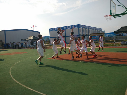在此次的比賽中,參賽的單位有監(jiān)理3標(biāo)中企建發(fā)、1標(biāo)中鐵十二局、4標(biāo)四川場道、3標(biāo)中國華西、5標(biāo)上海路橋、8標(biāo)中鐵航空港、10標(biāo)中水十六局、6標(biāo)甘肅機械化共8支籃球隊進行參賽,建設(shè)單位也派隊參加,進行友誼賽,我們跟兄弟單位中鐵航空港,上海路橋,中水十六局、四川場道一決高下,最后入圍四強,在決賽的比賽中,我們再次遇見實力強勁的中水十六局,雙方隊員在籃球比賽現(xiàn)場氣氛熱烈,隊員們積極進攻,嚴(yán)密防守,精彩的配合,巧妙的搶斷,不時的將比賽氣氛推向高潮。天氣雖然炎熱,但絲毫沒有影響隊員的熱情,盡管兩支球隊都是業(yè)余籃球愛好者,但他們在比賽中均表現(xiàn)出較好的團隊協(xié)作能力,一群年輕人激情飛揚,帶球、傳球、搶斷、上籃,賽場對抗激烈,隊員個個揮汗如雨,最后在我方隊員的努力拼搏下,以32:30的比分,贏得第一。