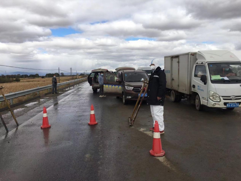 項(xiàng)目部黨支部書(shū)記杜騫,第一時(shí)間安排人員對(duì)北門卡口進(jìn)行布置,安排采購(gòu)疫情物資(醫(yī)用口罩、防護(hù)服、測(cè)溫槍、消毒液等),與10月1日10點(diǎn)左右在新機(jī)場(chǎng)北門疫情防控卡點(diǎn)布設(shè)完畢,配備了12名項(xiàng)目部管理人員(8小時(shí)三班倒)在卡口進(jìn)行疫情防控。新機(jī)場(chǎng)北門疫情防控卡點(diǎn)人員對(duì)過(guò)往車輛、人員進(jìn)行登記,掃碼、查看行程卡、核酸報(bào)告、登記來(lái)源地、去往地點(diǎn)。對(duì)無(wú)48小時(shí)核酸報(bào)告的人員進(jìn)行勸返。