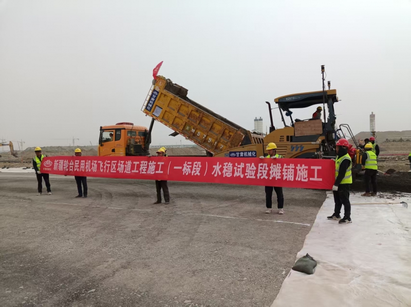 3月27日,新疆輪臺民用機場項目現(xiàn)場,隨著首車水泥穩(wěn)定砂礫混合料倒入攤鋪機,其緩緩啟動,我司承建的該項目飛行區(qū)場道工程(一標段)水穩(wěn)基層施工正式開啟。