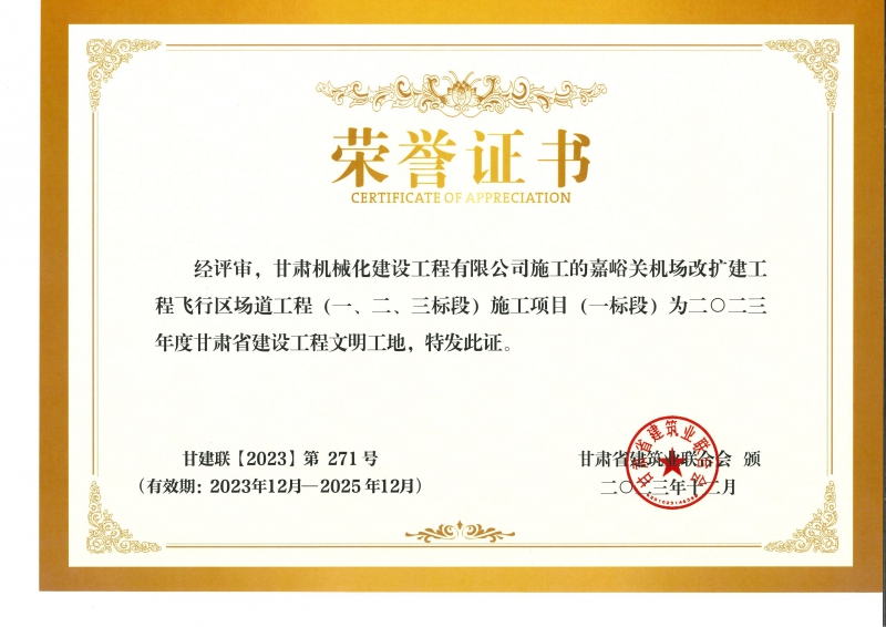 2023年度甘肅省建設(shè)工程文明工地 嘉峪關(guān)機(jī)場改擴(kuò)建工飛行區(qū)場道(一、二、三標(biāo)段) 施工項(xiàng)目 (一標(biāo)段)