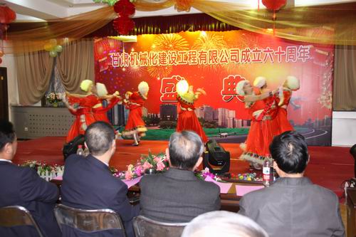 2013年3月22日下午兩點十分,甘肅機械化建設工程有限公司成立六十周年慶典大會在公司二樓大會議室舉行。公司領導、部分退休老領導、機關全體員工、各基層單位先進個人及代表出席大會。大會分兩個階段進行,公司黨委書記胡德生同志主持大會。大會第一階段,公司董事長陳想蕃先生向大會作慶典致辭,黨委書記胡德生同志作了重要講話。大會第二階段為公司文藝匯演,匯演共十二個節(jié)目,公司領導及員工歡聚一堂,表演精彩紛呈,現(xiàn)場氣氛非常熱烈,大會持續(xù)了近兩個小時。