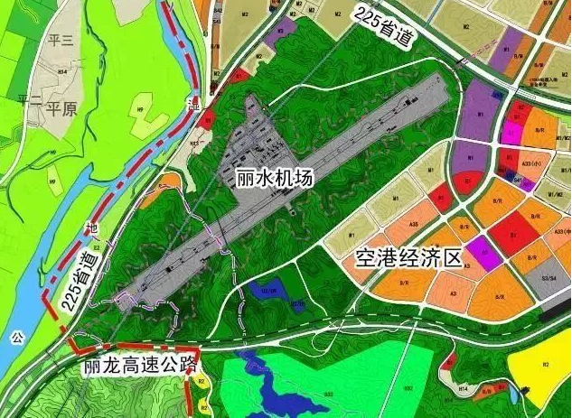 麗水機場定位為國內支線機場,飛行區(qū)等級指標為4C,新建1條長2800米、寬45米的跑道,2條垂直聯(lián)絡道,8個機位的站坪,12000平方米的航站樓,以及空管、供油等相關配套設施。新建麗水機場場址位于碧湖鎮(zhèn)東北側5.2km處甌江上游大溪河段東岸,由飛行區(qū)、航站樓、工作區(qū)等組成,其中飛行區(qū)升降帶及安全區(qū)總長度達3.3km,寬約300m,航站樓及工作區(qū)布置于飛行區(qū)西北側。場區(qū)地貌為低山丘陵與山麓溝谷,地形起伏變化較大,場地范圍附近山體最高點位于場區(qū)西南角,高程244.8m,最低點位于場地中部沙溪處,高程64.6m,相對高差約180.2m。場區(qū)山體植被發(fā)育,覆蓋率約80%。