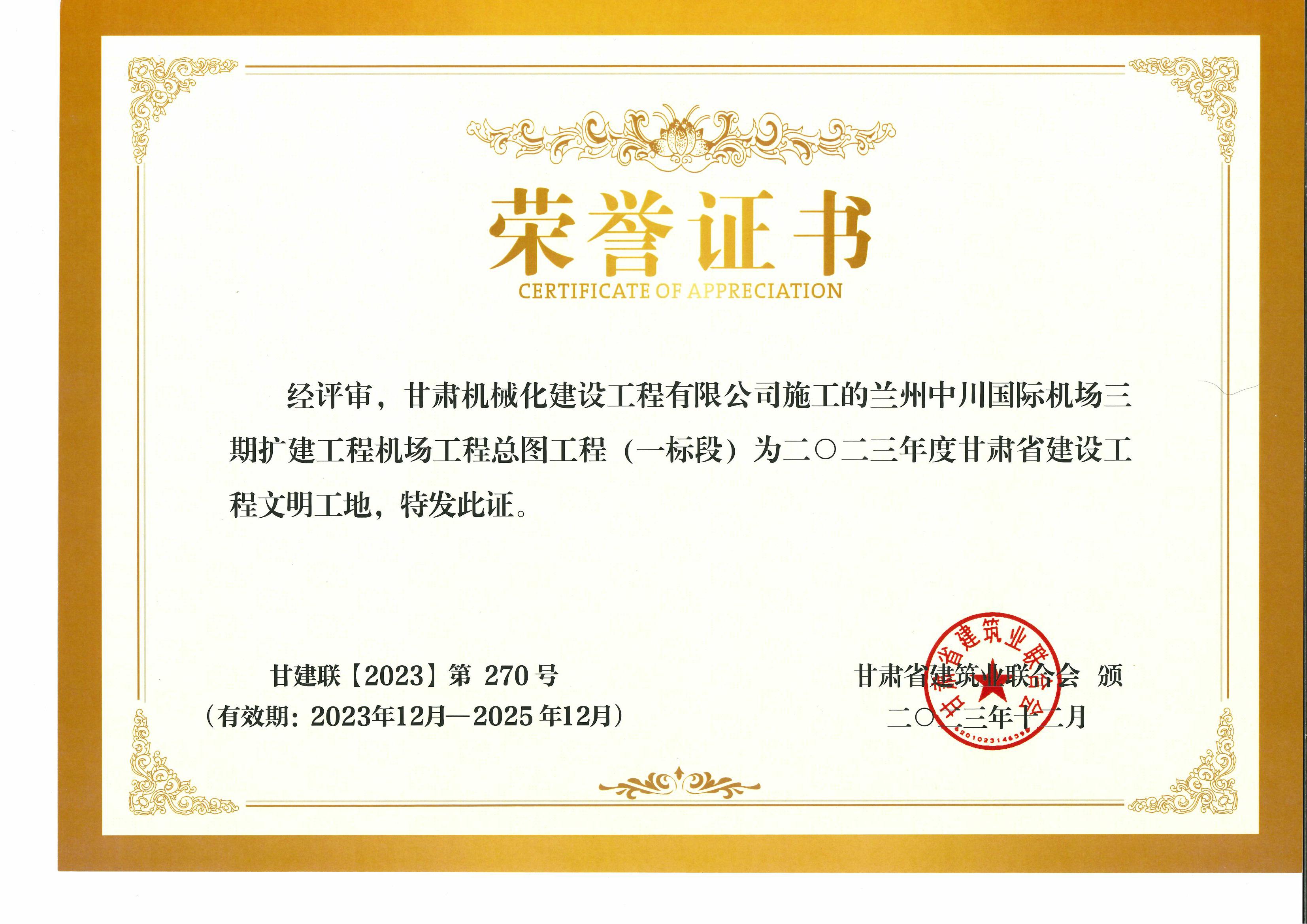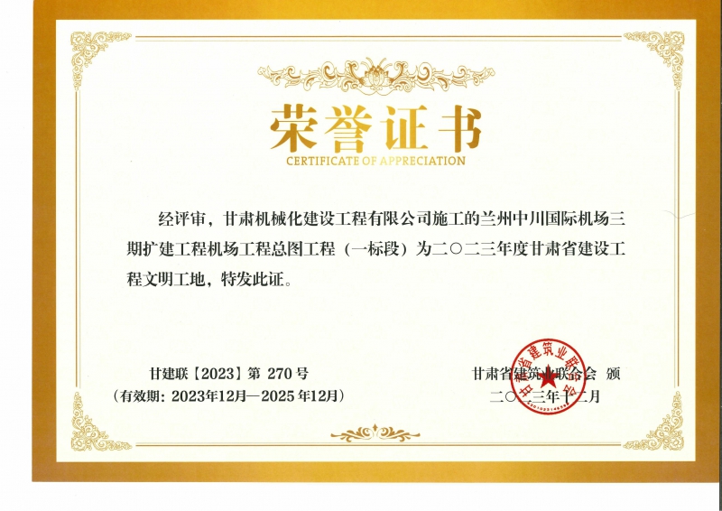 2023年度甘肅省建設(shè)工程文明工地 蘭州中川國際機(jī)場二期擴(kuò)建工程機(jī)場工程總圖工程 (一標(biāo)段)